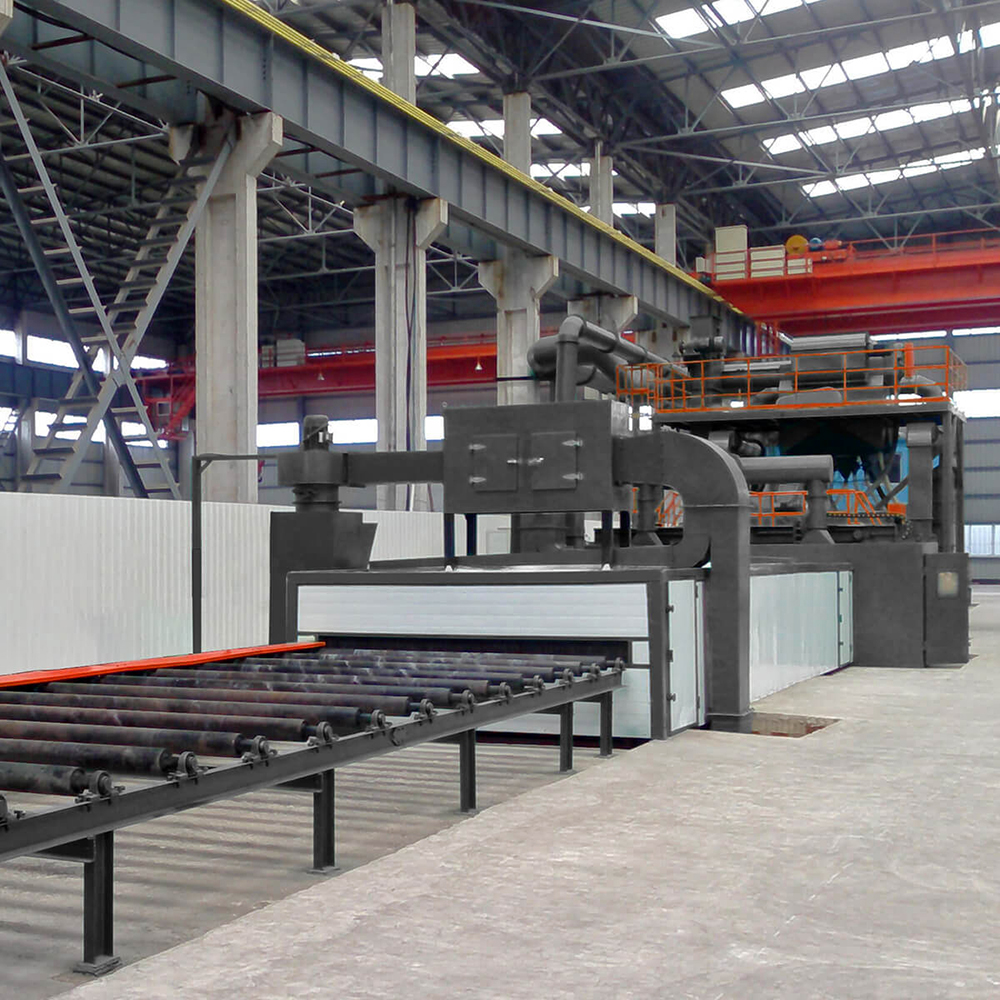 Автоматическая дробеструйная линия HRS-BCA2500 - это технологический комплекс, предназначенный для очистки металлических заготовок от окалины, ржавчины, старой краски и других загрязнений с последующим нанесением грунтовочного покрытия и сушкой. Эта система используется в машиностроении, судостроении, металлообработке и строительстве для подготовки металлоконструкций перед покраской или дальнейшей обработкой.