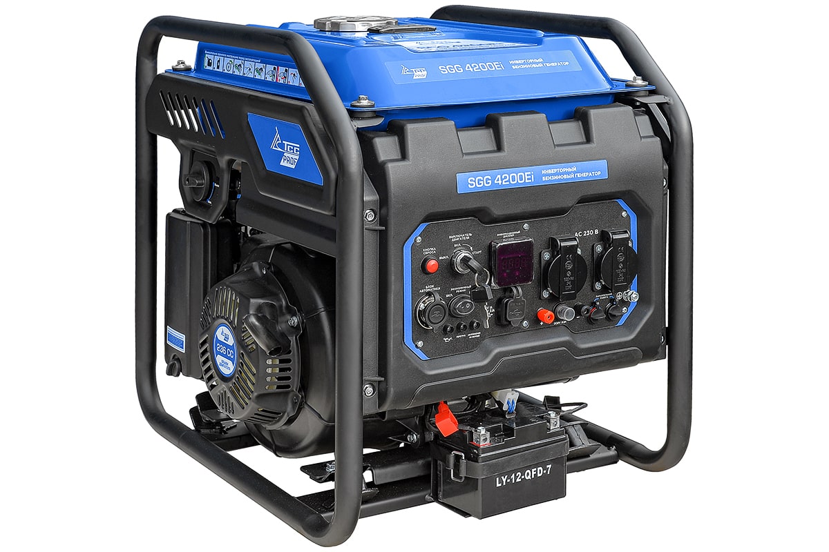 Бензогенератор инверторный SGG 4200Ei с электростартом и разъемом для подключения блока автоматики, вырабатывает электричество с высокой точностью частоты и напряжения. Предназначен для подключения к нему потребителей общей номинальной мощностью до 4,2 кВт. Позволяет подключать к генератору как обычных потребителей, так и точное электронное оборудование, например, ноутбуки, LCD-телевизоры или смартфон.