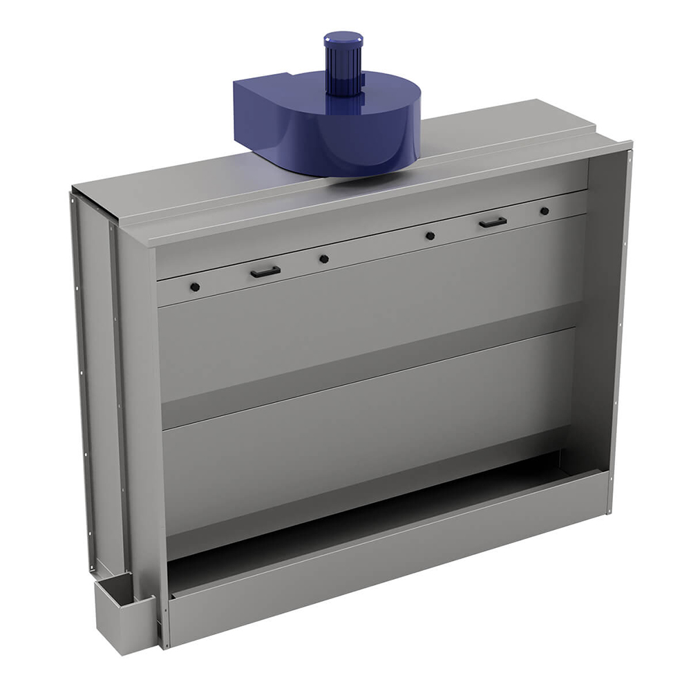 Принцип работы вентсистемы окрасочно-сушильной камеры данного типа заключается в том, что вытяжной вентилятор создает разряжение, которое обеспечивает забор воздуха из рабочей зоны. При этом водяная лицевая завеса улавливает и осаждает взвеси окрасочного тумана в ванной.