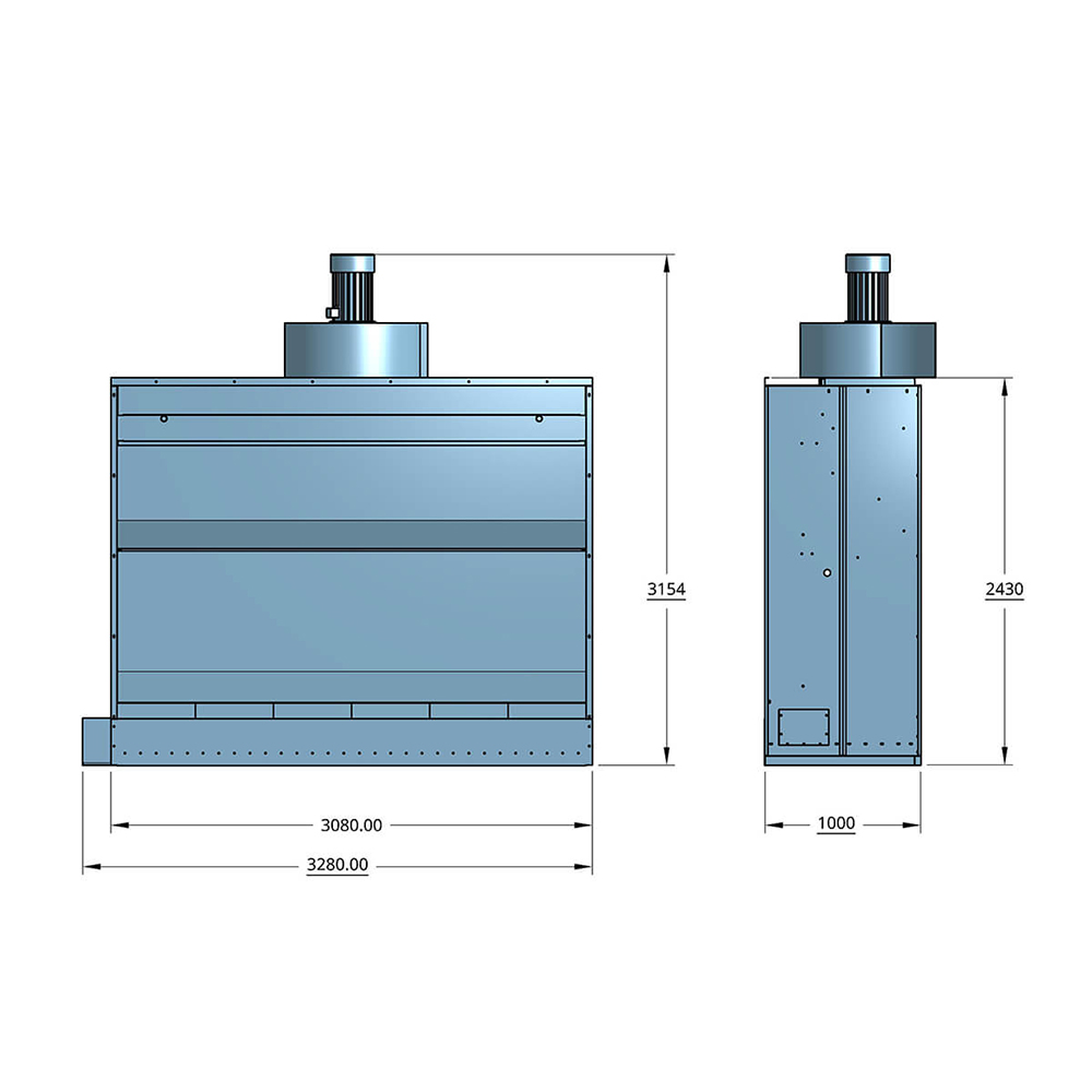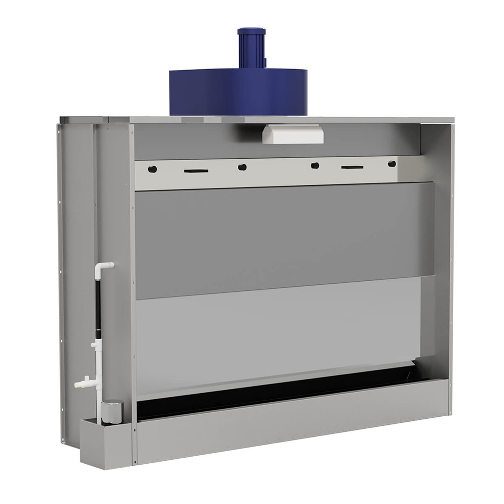 Внутренняя система дождевания осуществляет дополнительную очистку воздуха от отходов, улавливая и осаждая их в ванной. Циркуляция воды осуществляется насосом, установленным в кабине.