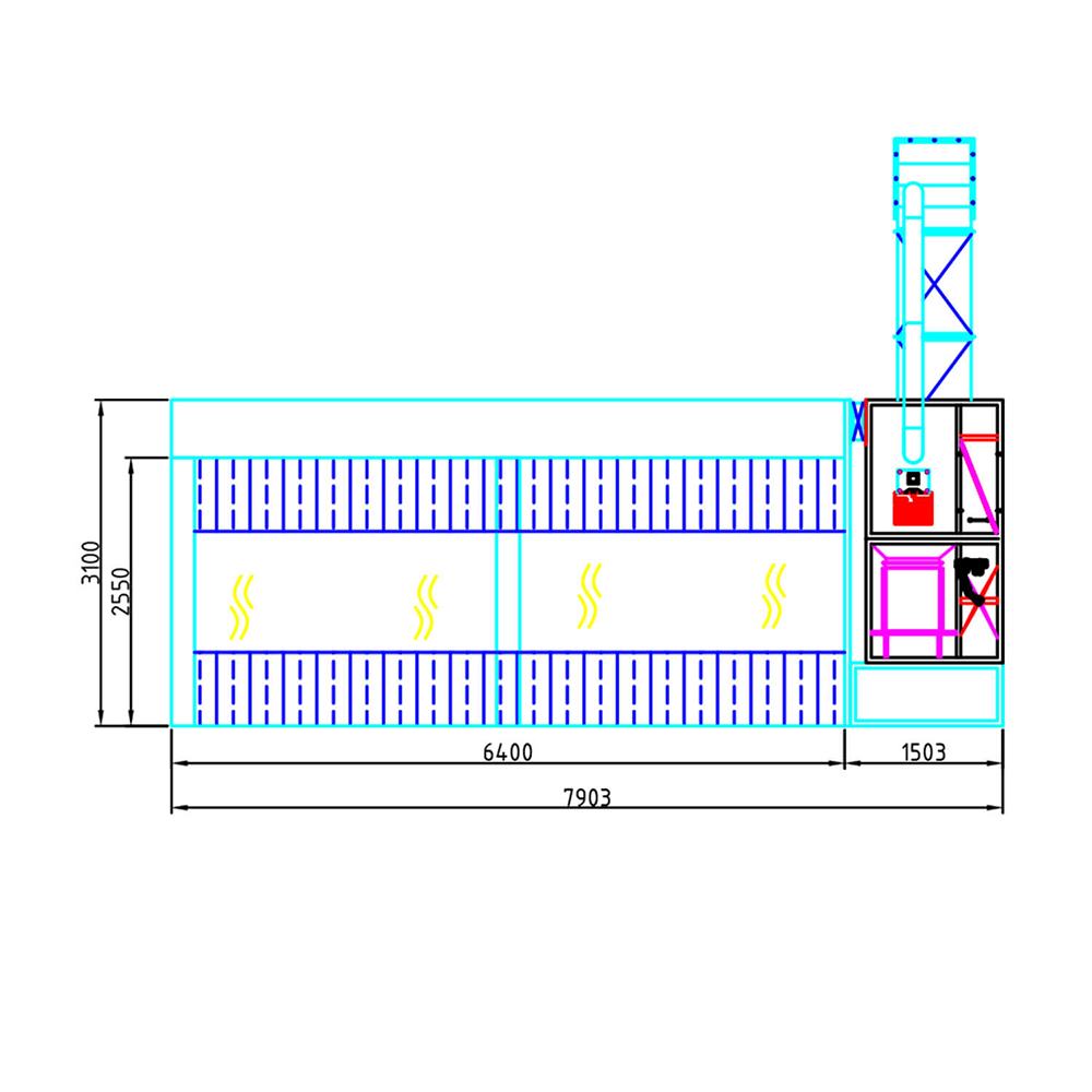 Пост подготовки оборудован приточным двигателем с центробежным вентилятором (5.5 кВт) и вытяжным двигателем с центробежным вентилятором (4 кВт). Приточно-вытяжная группа работает в трех режимах (продувка, окраска, сушка). Переключение между режимами осуществляется при помощи заслонки с пневматическим приводом.